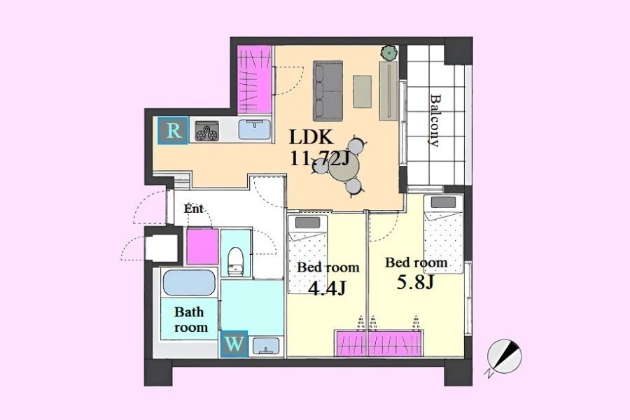 ゆとりの2LDKは収納が豊富で広々としたリビングが自慢。