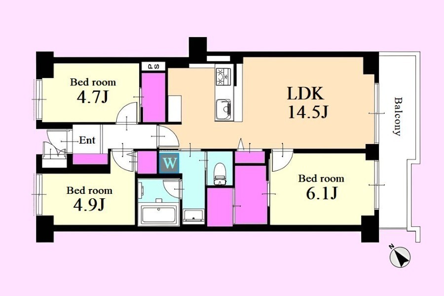 広々とした3LDK+2WICの間取りは、リビングダイニングを中心に家族で過ごす時間をゆったり楽しめます。