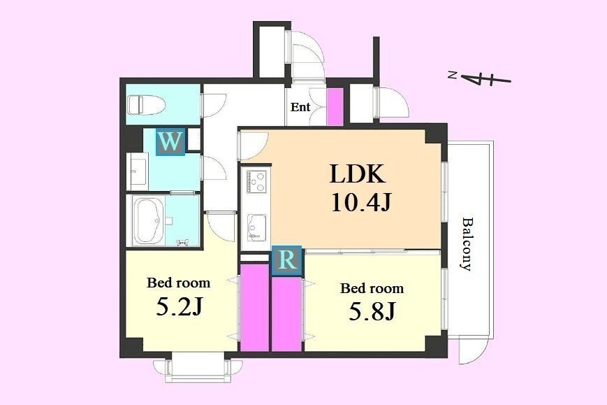 約50m2超の2LDKで、二人暮らしにちょうど良い広さと間取りが魅力です。