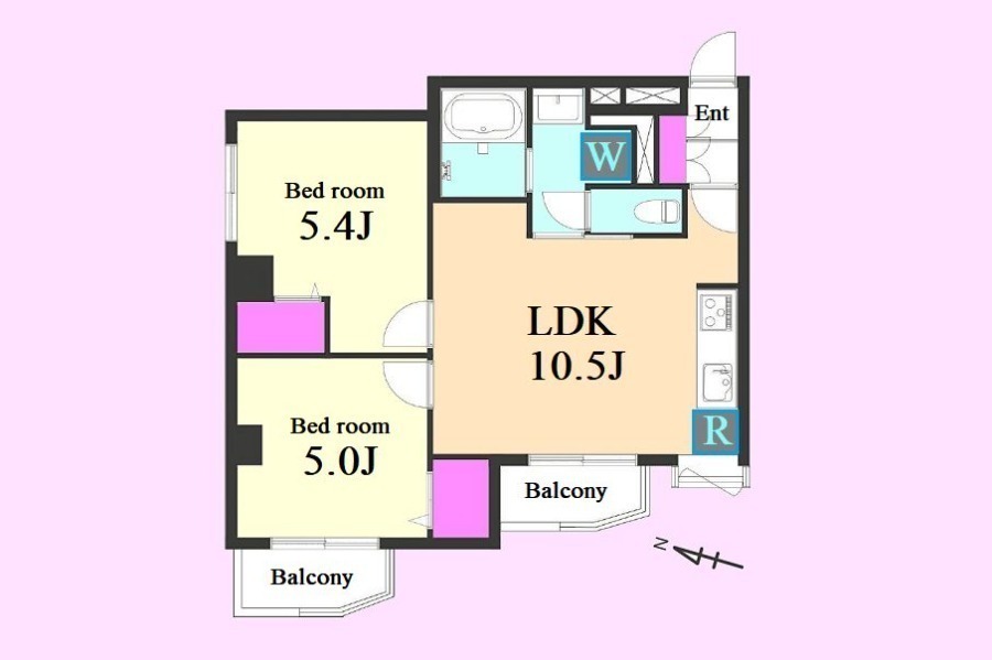 2LDKで2人暮らしに最適なコンパクトな間取り。