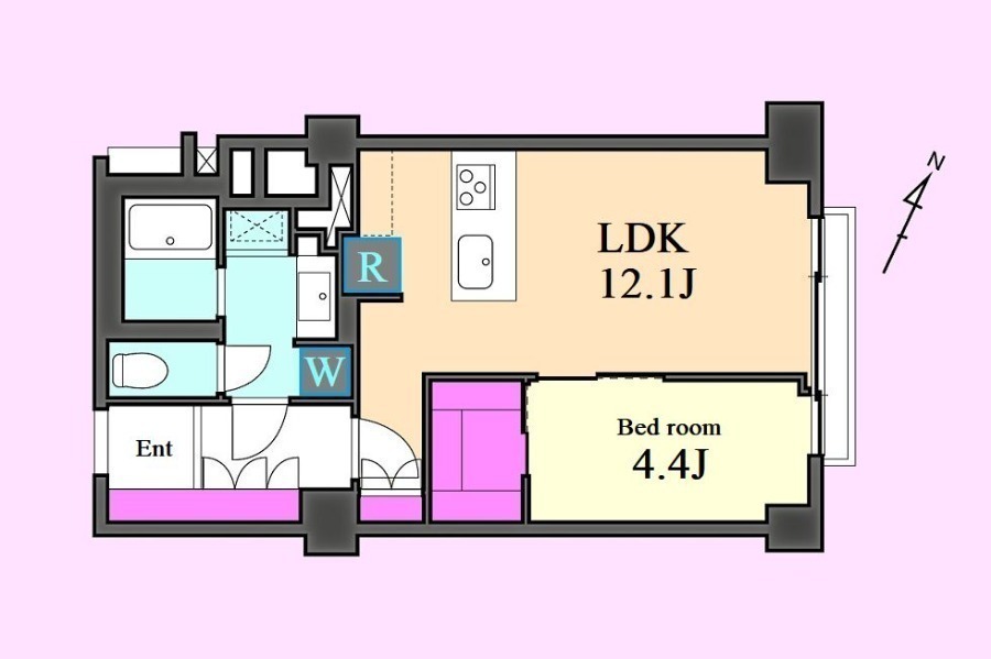 1LDK+WIC、45m2越えのゆとりある間取り。
