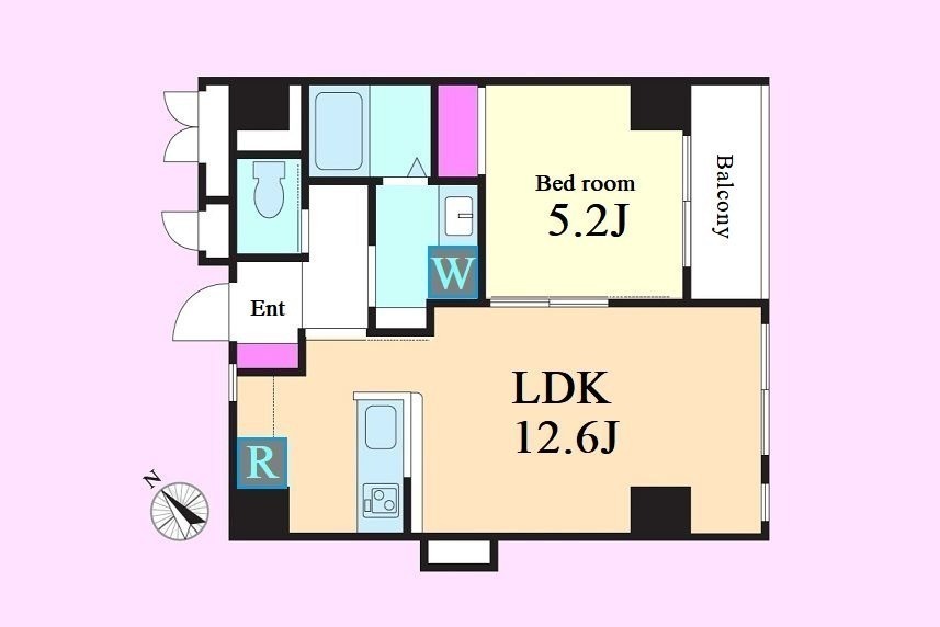 バルコニー付きの開放的な間取りは1~2人暮らしにぴったりです。