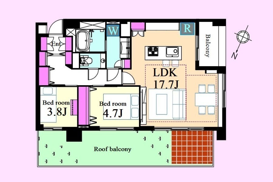 のびやかなリビングとルーフバルコニー、さらに角部屋ならではの陽当たりと眺望が特徴です。