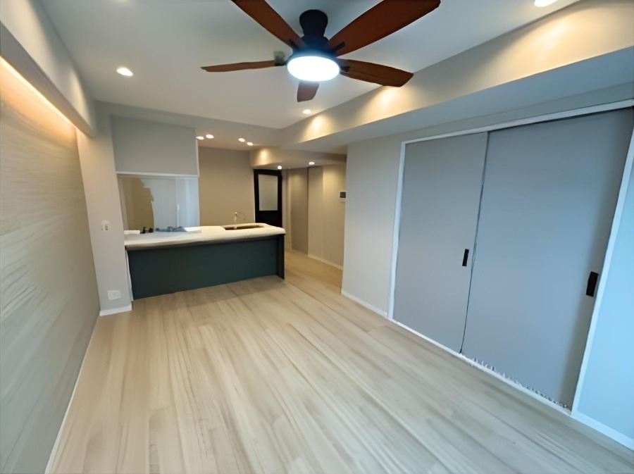 新規リフォームの1LDK、スタイリッシュなシステムキッチンやユニットバス、温水洗浄トイレなど水回りも一新されます。