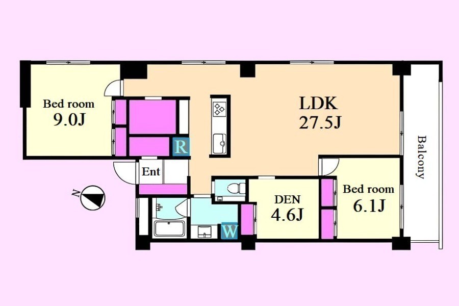 南向角部屋・27帖の大空間LDK