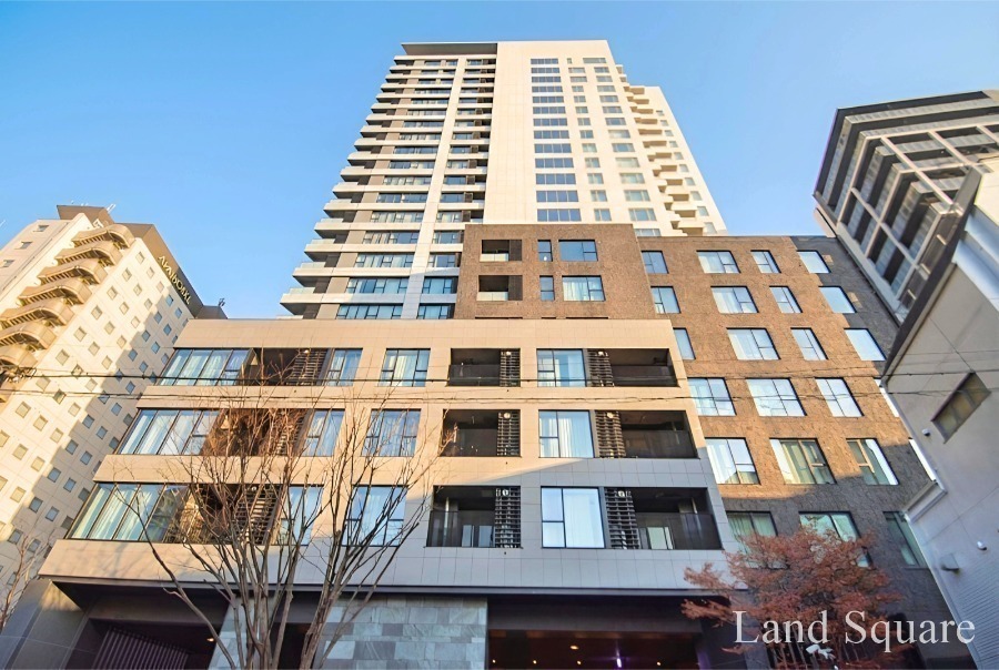 黒を基調とした重厚な外観とホテルライクなエントランスが印象的です。