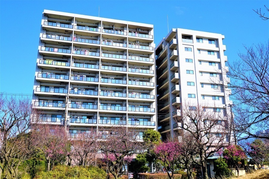 マンションの目の前には桜梅公園が広がり、春には桜と梅を楽しめる穏やかな住宅街で、前面道路が行き止まりのため車通りが少なく、外遊びをするお子さまにも安心の環境です。