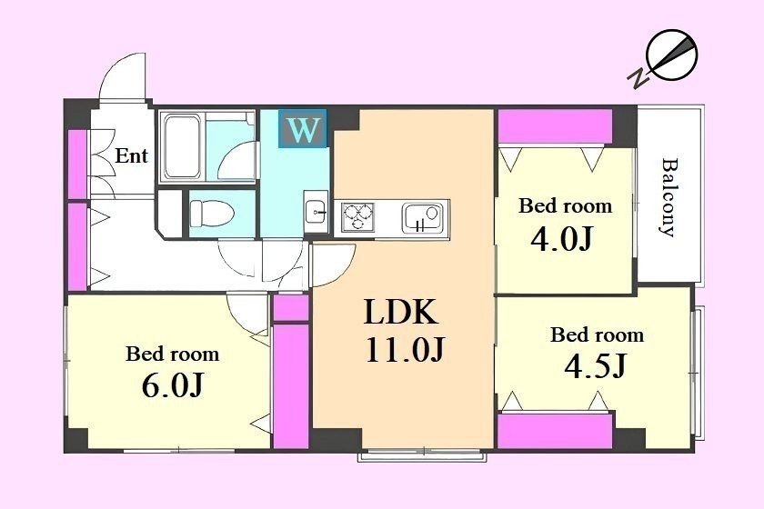 3面採光の明るい角住戸ならではの開放感が魅力です。