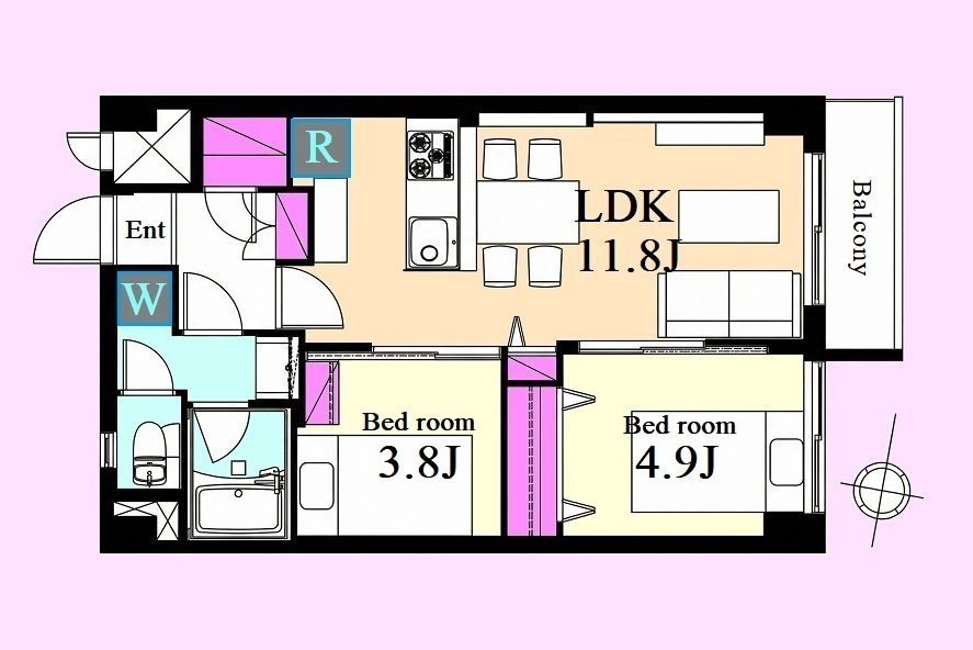 フルリノベーションしたお部屋です。約11.8帖のLDKは家具レイアウトがしやすく、4.9帖+3.8帖の洋室2部屋で寝室とワークルームなど、二人暮らしのスタイルに合わせた使い分けが可能です。2024年に大規模修繕工事実施済、長期修繕計画ありで共用部の管理面も安心感があります。