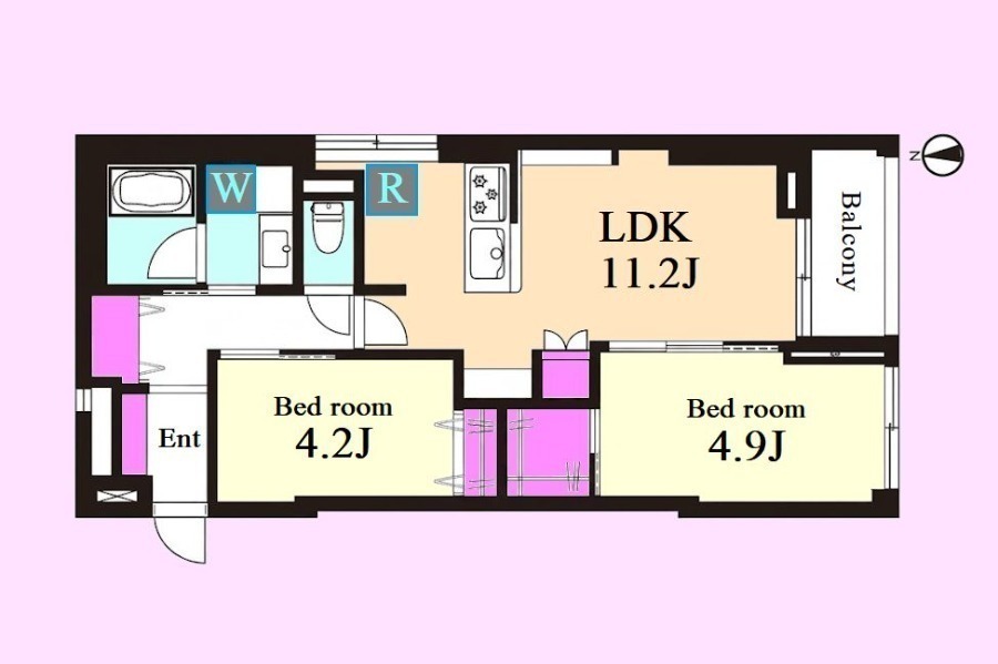 2人暮らしにちょうどよい広さを確保しながら、ゆとりあるLDKで毎日の時間を心地よく過ごしやすい間取りです。収納スペース充実しており、荷物が増えやすいおふたり暮らしでも室内をすっきり保ちやすい印象です。